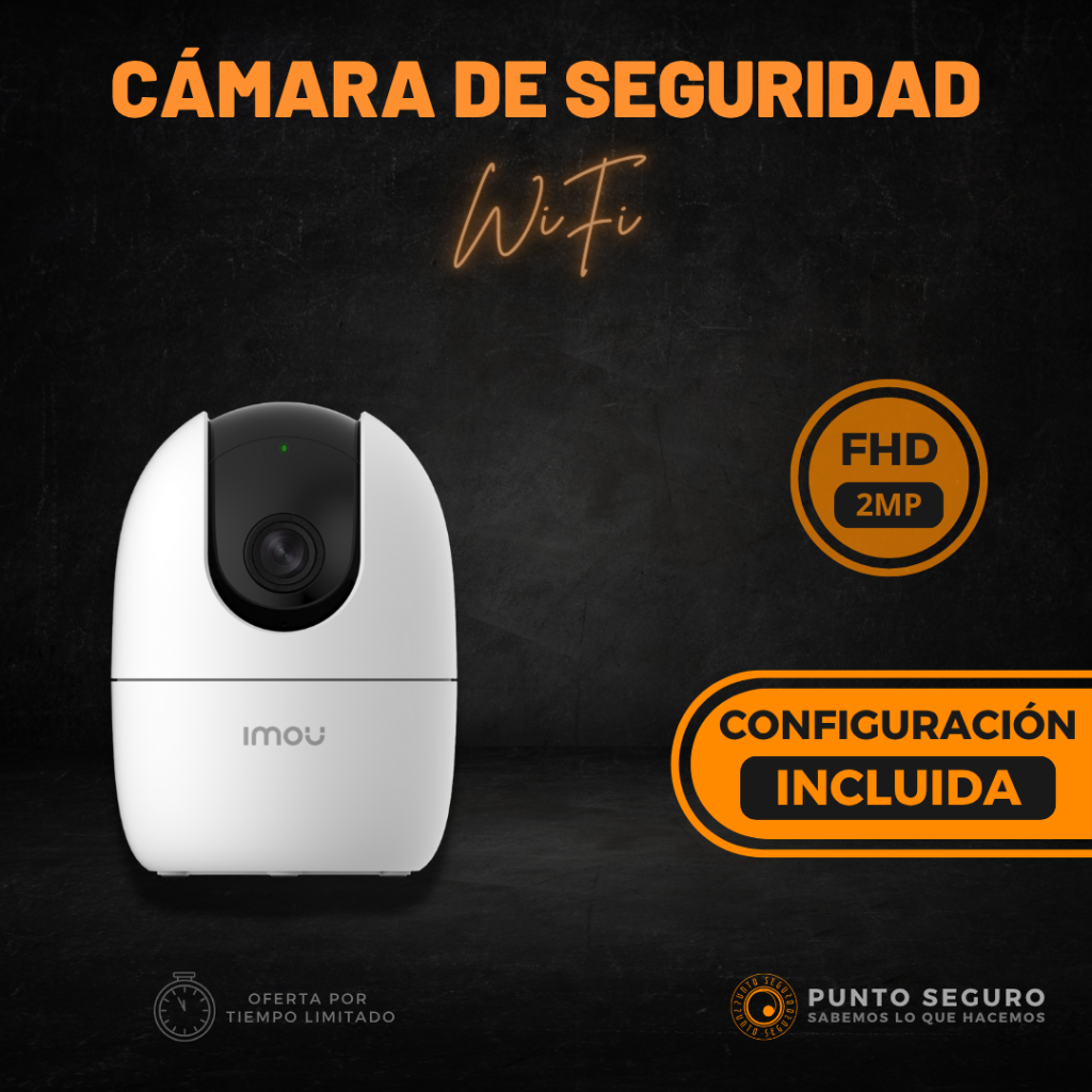 Cámara de seguridad Wi-Fi IMOU RANGER 2 de 2MP. Posee micrófono y altavoz, detección de humanos y detección de sonidos inusuales, función de girar e inclinar con seguimiento inteligente, sirena, visión nocturna, resolución 2 Megapíxeles (FULL HD), apta uso en interiores. ¡Configuración incluida!.